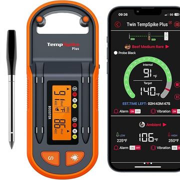 ThermoPro TempSpike Plus 600ft Wireless Meat Thermometer with 2 Color-Coded Probes, Bluetooth Meat Thermometer with LCD-Enhanced Booster for Food Cooking Grill Smoker