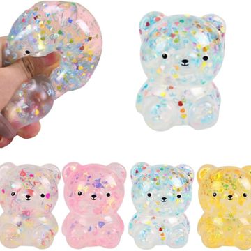 1Pccs Squeeze Toys Letter Sequins Candy-Bear Stress Relief Toy Hand Fidget Sensory Office Desk Squishy Toy (Blue or Randomly Color)