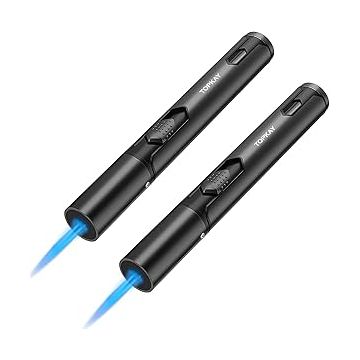 Torch Lighters, 2 Pack, Butane Lighters, Adjustable Jet Flame Torch Lighters, Windproof Butane Refillable Gas Torch Lighter Long Lighter for Candle, Grill, BBQ, Fireworks(Butane Not Included)