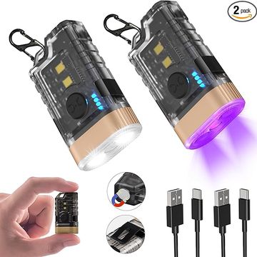 LED Small Powerful EDC Flashlight, 365nm UV Black Light, Mini Led Flashlight 1500 LM, USB C Rechargeable Mini Keychain Flash Light with Clip, Tail Magnet, 9 Modes, Waterproof Pocket Flashlights 2 PC