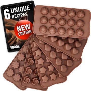 Chocolate Molds Silicone - Set of 6 (with Free Recipes eBook) - Non-Stick & Food Grade Candy Molds for Chocolate, Jelly Candies, Truffles, Bath Melts & Candles - Dishwasher Safe