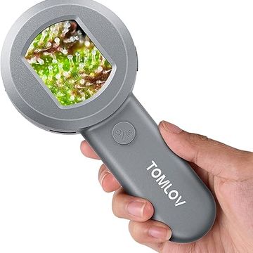 TOMLOV P10 Microscope for Adults Kids, Portable 100X Illuminated Jewelers Loupe, Handheld Coin Magnifier with Light for Collectors, Pocket Trichome Magnifying Glass, Digital Microscope with 2" Screen