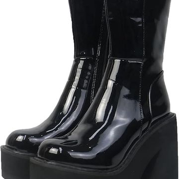AMINUGAL Womens Wedge Heel Ankle Boots Platform Zipper Punk Motorcycle Booties Chunky Block High Heel Round Toe Fashion Work Combat Boots Mid Calf For Women