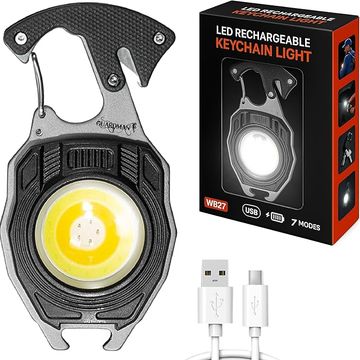 GUARDMAN Stocking Stuffers – Multitool Survival Keychain Tool, LED Flashlight, Carabiner, Fire Starter, Screwdriver, Whistle, Bottle Opener – Camping & Outdoor Multi Tool Gear - 1 Pack