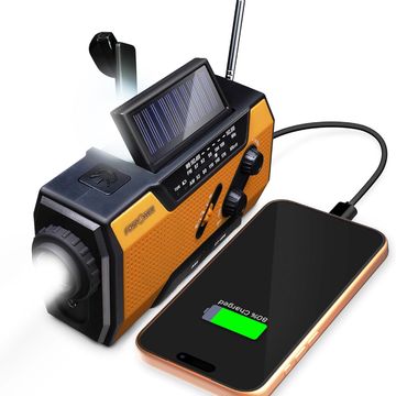 FosPower NOAA Emergency Weather Radio A1 7400mWh Portable Power Bank, AM/FM, USB/Solar/Hand Crank Charging, Battery Operated, SOS Alarm & Flashlight for Indoor/Outdoor Emergency - Orange
