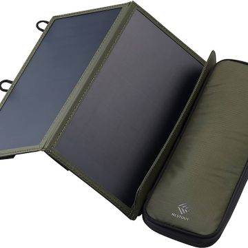 ELECOM NESTOUT Portable Solar Panel, Dual USB-A Ports, 28W Power Generation Charger for Phone Camping, Durable Water-Resistant Ripstop Nylon, Foldable Lightweight, Adjustable Stands (4-Panel)