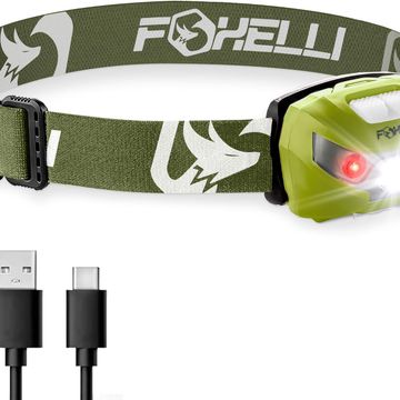Foxelli USB-C Rechargeable LED Headlamp – Super Bright, Lightweight Head Lamp for Running, Camping, Hiking & Work – Comfortable Fit for Adults & Kids