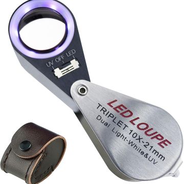 10x Foldable Pocket Magnifier Loupe with UV and LED Light for Jewelry, Rocks, Coins, and Antiques - Illuminated Magnifying Tool for Eye, Stamps, Watches, Hobbies, and Gems