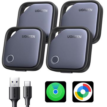 UGREEN Finder Duo (iOS and Android) Air Tracker Tags 4 Pack, Rechargeable Bluetooth Tracker Key Finder Compatible with iOS and Android for Keys, Luggage and...