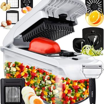 فرمة الخضراوات الفاخرة 9 في 1 من فولستار | مفرمة بصل وقطاعة | مقشرة، قطاعة خضراوات إلى قطع طويلة، جهاز تحضير نودلز السبانخ، عصارة ليمون، قطاعة شرائح للبيض وأداة فصل - أداة مطبخ مثالية