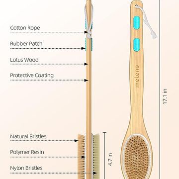 Metene Shower Brush with Soft and Stiff Bristles, Bath Dual-Sided Long Handle Back Scrubber Body Exfoliator for Wet or Dry Brushing