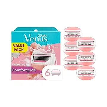 Gillette Venus ComfortGlide Womens Razor Blade Refills, 6 Count,(Pack of 1) White Tea Scented Gel Bar Protects Against Skin Irritation