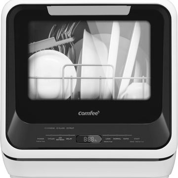 COMFEE' Portable Mini Dishwasher Countertop with 5L Built-in Water Tank for Apartments& RVs, No Hookup Needed, 6 Programs, 360° Dual Spray, 162℉ High-Temp& Air-Dry Function