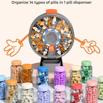 Pill Dispenser with 14 Large Compartments and Child-Proof Lock, Spindo Medicine Dispenser- Dispense Vitamin/Tablet/Supplement for Elderly/Amnesia/Dementia.