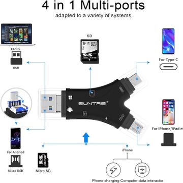 SD Card Reader for iPhone/iPad/Android/Mac/Computer/Camera, 4-in-1 Micro SD Card Reader Trail Camera Viewer, Portable Memory Card Reader SD Card Adapter for SD and TF Cards.