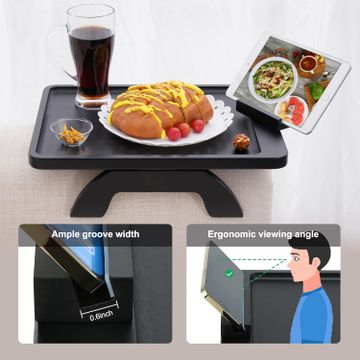 Couch Arm Table Tray, Bamboo Sofa Arm Clip on Tray Table, 15.75" x 11.8" Large Sofa Armrest Tray with 360° Phone Holder, Portable Side Table for Phone, Remote, and Snack.