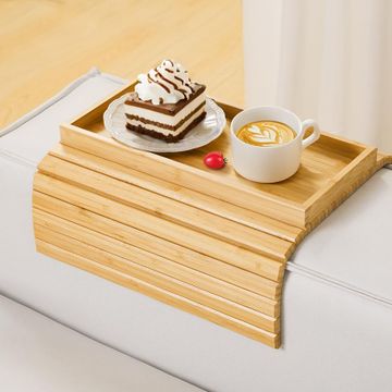 Tavolino da Divano in Bambù – Vassoio Portaoggetti per Bracciolo | Tavolo Flessibile, Pieghevole e Regolabile – Ideale per Tazze, Telecomandi e Cellulari