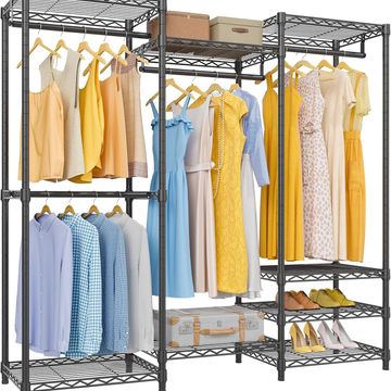 V5 Armadio portatile per armadio resistente, appendiabiti autoportante in metallo, con 4 aste per appendere e 8 ripiani, rack regolabile per armadio, 144 cm di lunghezza x 15,7 cm di larghezza x