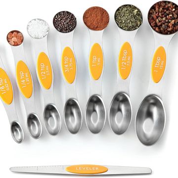 Stainless Steel Magnetic Measuring Spoons Set with Strong Magnets, Heavy Duty Metal Kitchen Gadgets for Baking & Cooking, Fits in Most Kitchen Spice Jars, Multicolor, Set of 8 with Leveler