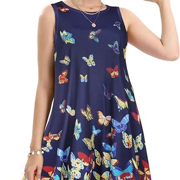 Women's Summer Dresses 2025 Beach Casual Sleeveless Floral Print Tank Loose Sundress with Pocket