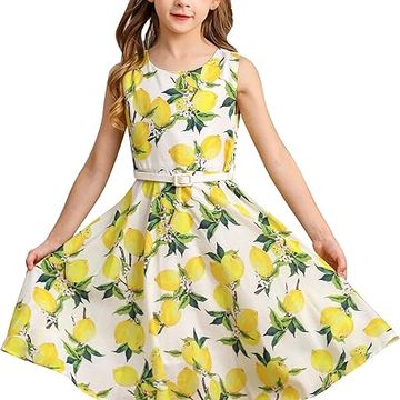 Vestito Bambina Elegante Cerimonia Festa Floreale Vintage con Cintura.