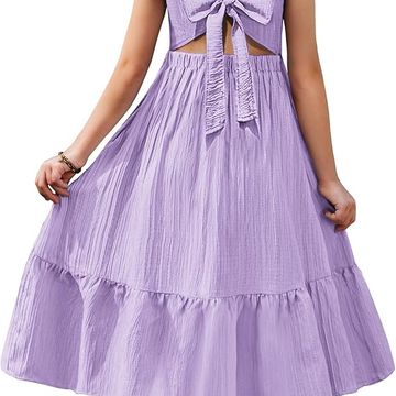 Girls Summer Tie Back Dress Tween Boho Casual Square Neck Flutter Sleeve Maxi Dresses with Pockets