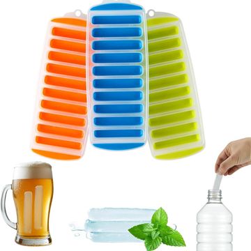 Home Silicone Narrow Ice Stick Cube Trays with Easy Push and Pop Out Material, Ideal for Sports and Water Bottles, Assorted Bright Colours.