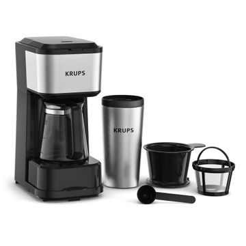 KRUPS Simply Brew Compact 5 Cup Coffee Maker: Stainless Steel Design, Pause & Brew, Keep Warm, Reusable Filter, Drip-Free Carafe.
