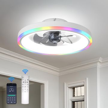Ceiling Fans with Lights, 20" Modern Flush Mount Ceiling Fan with Remote and Dimmable LED Lights, 6 Speed Fan Light for Bedroom Living Room.