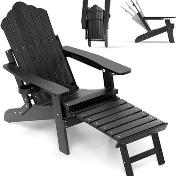 olding Adirondack Chair, All-Weather Lounge Chair with Adjustable Backrest, Retractable Ottoman, Cup Holder, HIPS Fire Pit Chair for Lawn, Pool, Patio, Porch.