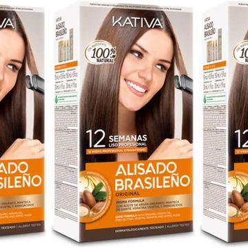 Kativa Brazilian Straightening Kit - Professional Home Straightening Treatment - Up to 12 Weeks Lasting - Keratin Straightening - Pack of 3