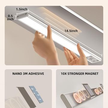 134 LED Under Cabinet Lights, 3200mAh Rechargeable Motion Sensor Light Indoor, Dimmable Magnetic Closet Lights with 3 Colour Temps, Wireless Under Counter Lights for Kitchen, Stair ,2 Pack.