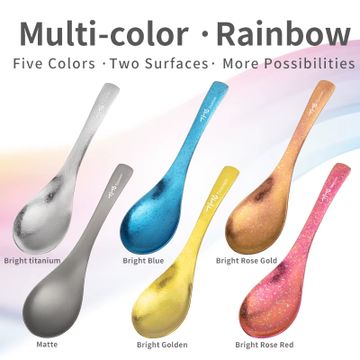 Rainbow Titanium Plated Stainless Steel Round Spoons - 6 Piece Set, Colourful Dinner Table Spoons, Dishwasher Safe.