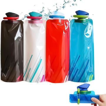 Folding Bottle, 4 Pieces Collapsible Water Bottle Trekking Reusable Lightweight and Portable – Ideal for Hiking and Travelling (700 ml)